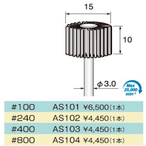 粒度(#):800 | 軸径(mm):3 | その他仕様:φ15×10 3mm軸 | その他仕様:#800 | 単位:1本