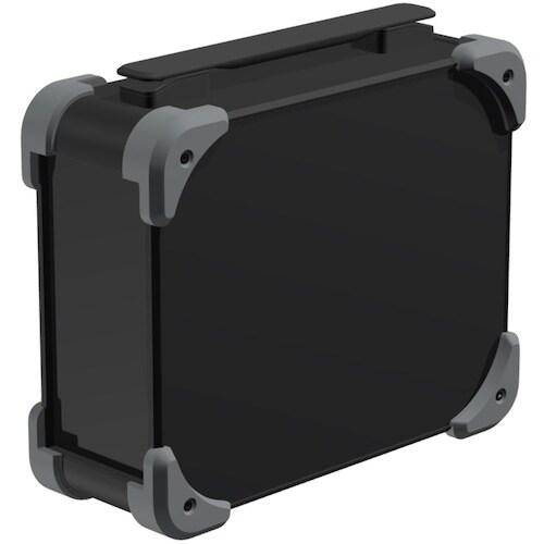 キャリングハンドル付の耐衝撃型アルミケースです。コーナーガードは弾力性のあるTPE (エラストマ) 製で、 滑りにくくゴム足の役割にもなります。
