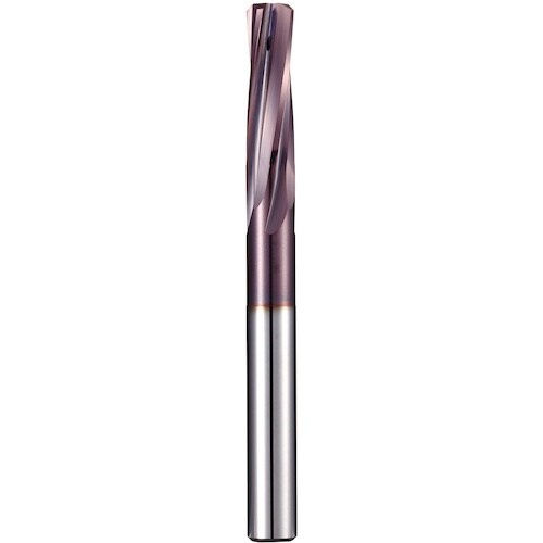 右ネジレ刃の作用により、HRC60前後の高硬度材も加工可能です。オイルホールにより、刃先の耐摩耗性が向上します。高硬度用/難削材用。 |