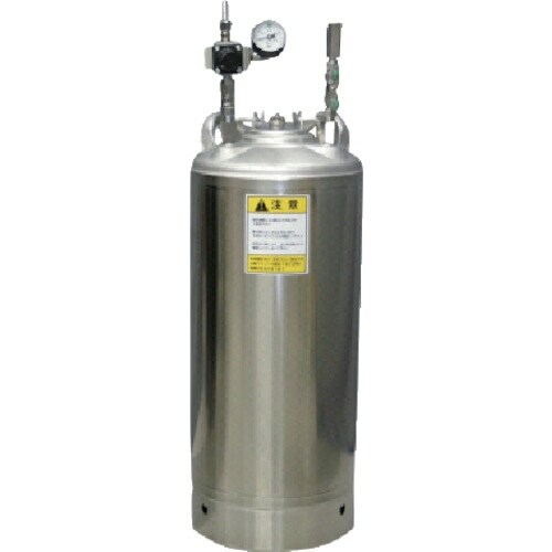 液体の圧送に最適な軽量、コンパクトなステンレス製の加圧容器です。減圧弁、リリーフバルブ、液用フィルターが標準装備しています。蓋の開閉が簡単なワンタッチレバー式です。液体をエアーで圧送するタンク。 |