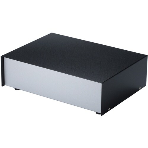 カバーが鉄製、シャーシがアルミ製の汎用金属ケースです。シャーシは裏面導通処理のアルミ板を使用しています。内面が導通となりますので、アースやグランドが取り易くなります。