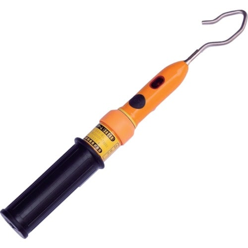 電線路の充電の有無を被覆線上から検出して音と光で知らせます。伸縮式のため高所等離れた電線路への設置を容易にかつ安全に行うことができます。伸長時に60cmの絶縁距離が確保されています。 |