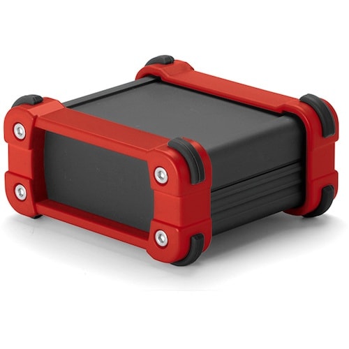 コーナー部がシリコンゴム製ガード付で、デザインと耐衝撃性に優れたアルミ押出材ケースです。上下カバー2色・フレーム8色の組合わせにより、合計16タイプものカラフルな色仕様が選択可能です。 |