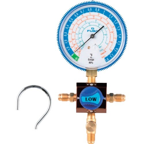 流通口径が大きいので真空引時間、冷媒充填時間が短縮されます。脈動振動吸収式ゲージなので針の振れが少なく読みとりやすいゲージです。冷凍空調設備の冷媒ガスの充填回収に。