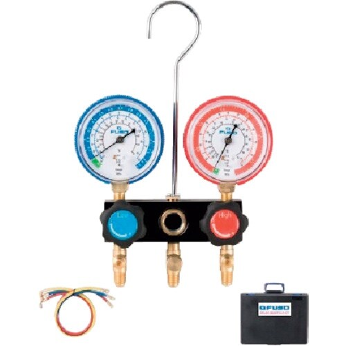 ニードルバルブ式なので微調整ができます。脈動振動吸収式ゲージなので針の振れが少なく読みとりやすいゲージです。冷凍空調設備の冷媒ガスの充填回収に。 |