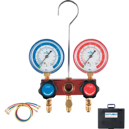 ニードルバルブ式なので微調整ができます。脈動振動吸収式ゲージなので針の振れが少なく読みとりやすいゲージです。冷凍空調設備の冷媒ガスの充填回収に。 |