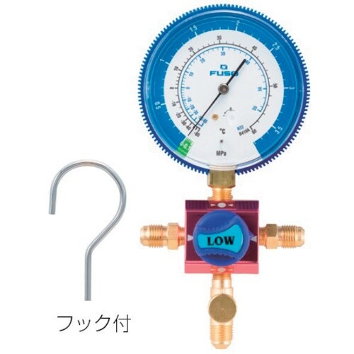 流通口径が大きいので真空引時間、冷媒充填時間が短縮されます。脈動振動吸収式ゲージなので針の振れが少なく読みとりやすいゲージです。冷凍空調設備の冷媒ガスの充填回収に。