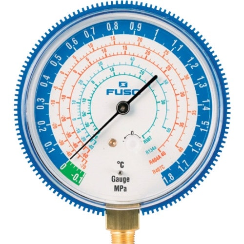 R407C・R404A・R507A・R134a冷媒飽和温度目盛付です。振動吸収機構タイプで数値が読み取りやすいです。マニホールドのゲージ交換用に。