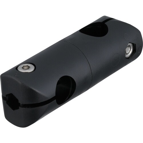 当社シャフトと組み合わせが可能なXYジョイントです。樹脂成型品のため軽量で安価です。凹凸構造により45°ピッチで角度を調整できます。