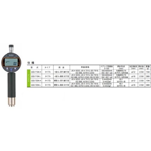 テクロック TECLOCK デジタルデュロメータ タイプD 脚長(太穴)型 JIS K 6253準拠 GSD720KL 1個 A08Y-7115