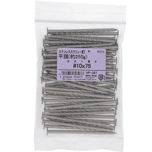 ステンレス製の平頭スクリュー釘です。 |
