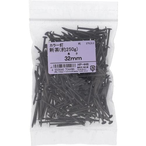全長(mm):32 | その他仕様:着色釘 | 材質・仕上げ:鉄 | 単位:1袋(270本)