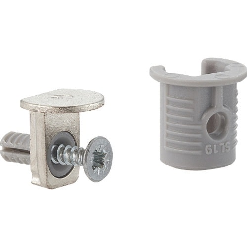 棚板を簡易的に固定する棚受です。固定位置まで押し込むとカチッと音がします。キャビネットと棚板のがたつきを抑えられるタイプです。棚板から本体とカップが出っ張らず、きれいに収まります。 |