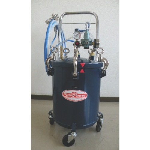 圧送タンク、ガン、ツインホースセット溶剤系、水性系どちらでもいける圧送タンクキット。制御用の減圧弁2機仕様。市販の18リットル角缶が入ります。通常は内容器としてペール缶が入っています。 |