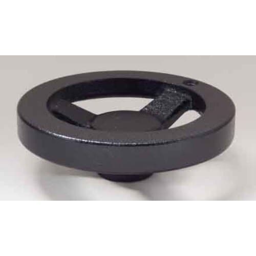黒色焼付塗装の角リム朝顔形ハンドル車です。握り用のネジ穴付きですが、握りは別売りです。