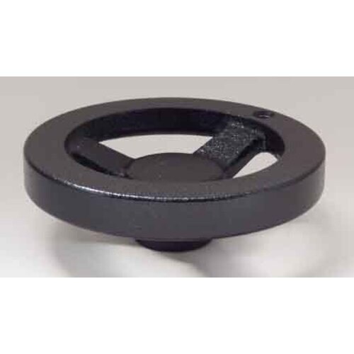 黒色焼付塗装の角リム朝顔形ハンドル車です。握り用のネジ穴付きですが、握りは別売りです。 |