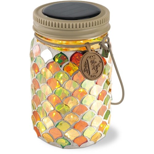 ソーラー充電で暗くなるとアンティーク調の瓶に入ったフェアリーライトがキラキラと輝きます。