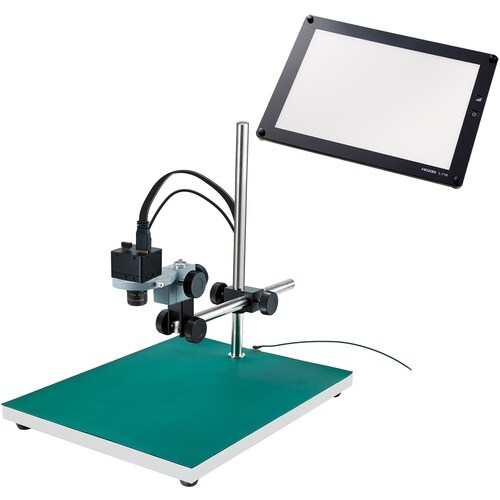 多機能型モニター用カメラ & 高画質な低倍率レンズ高さもある大きい観察対象に最適(面発光照明付)簡易計測機能を内蔵した、HDMIモニターに接続して使用するカメラのセットです。 |