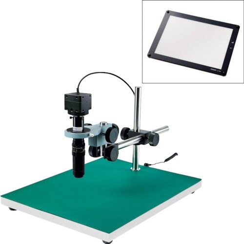 高性能USBカメラ×高画質な高倍率ズームレンズです。大きい観察対象に最適(面発光照明付)です。堅牢で取付ネジを多数備えた500万画素USBカメラのセットです。 |