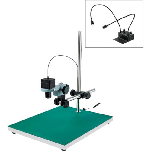 高性能USBカメラ×高画質な低倍率レンズです。高さもある大きい観察対象に最適(スポット照明付)です。堅牢で取付ネジを多数備えた500万画素USBカメラのセットです。