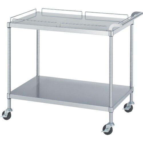 シンコー ステンレスワゴン(SUS430・ガード付)天地2段タイプ ガード:天板のみ φ75導電ナイロン車 900×600×800 M119060800NE75SH 1台