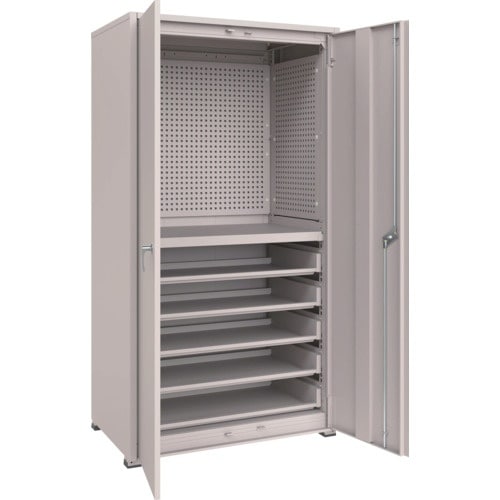 TRUSCO M3中量棚 背板・側板・扉付 W900XD595XH1800 中棚1段スライド棚5段 パンチングパネル付 M36363IPP3SDL35SGD 1台