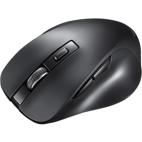 握りやすい形状で中型サイズのBluetoothマウスです。左右のくぼみに親指と薬指がフィットする握りやすい形状です。 |
