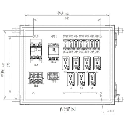 仮設電灯分電盤の標準型です。大阪府の自社工場で設計、製造しています。部分的な修正・変更から、フルオーダーまで、別作対応可です。工事現場のコンセント、照明や工具等の電源に。 |