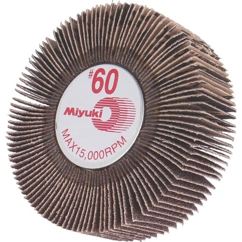 ミニフラップホイールの羽根を斜めに植えつけることで、研削性能と持続性能がアップしています。バリ取り。サビ落とし。塗装落とし。ブレージング。