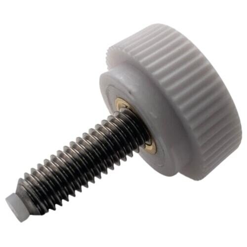 ナイロン製の化粧ネジ、先端に樹脂パッドを付けた製品です。締め込んだ際、相手物に樹脂パッドが当たり固定することができます。樹脂素材なので相手物を傷つけることなく保持できます。
