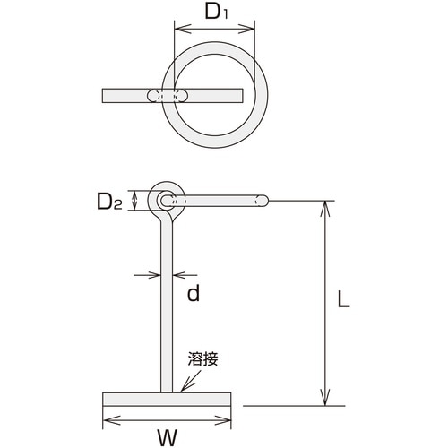 使用荷重(kN):9.8 | L(mm):286 | W(mm):200 | 呼び径d(mm):16 | リング内径D1(mm):120 | D2(m…