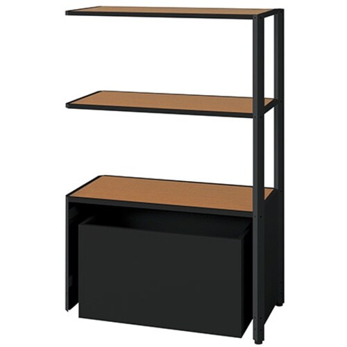 NAIKI シェルフラック(下段ボックス メレム MU型/天板:ミディアムウォールナット 本体:サテンブラック/W925×H1393 MU0914RUSSBMW 1台 A091-3896