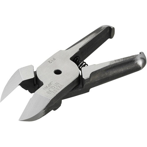 切り口を平らにカットする樹脂用ブレードです。切り口が残ってはいけない場合のゲート処理に合せて切断面に大きなRをもうけています。一般的な鋼線や樹脂の切断、かしめに。 |