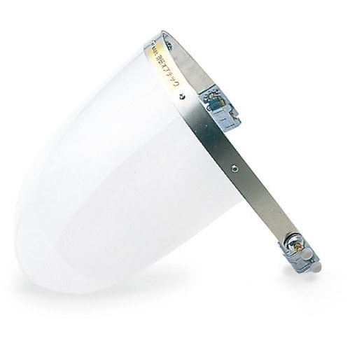 野球帽型ヘルメットに取付可能です。ねじ止め式でしっかり固定します。球面レンズタイプです。アクリルレンズなので透明度が高く、作業時に視界を邪魔しません。 |
