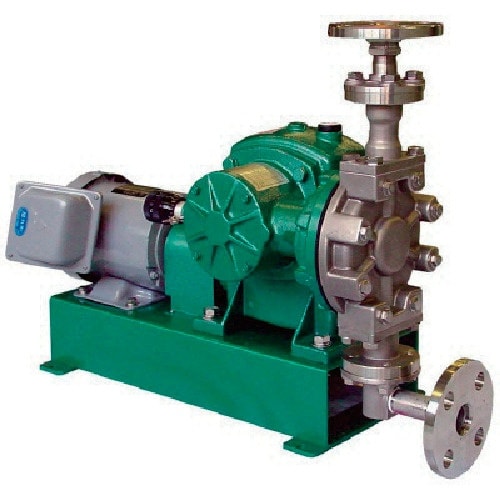 スラリーを含む含んだ液の移送に最適です。直動ダイヤフラム方式によりメンテナンスが油圧式に比べ大変容易です。脱水機、フィルタープレスの加圧ポンプ。化学工場、機械工場等の原料定量供給。 |