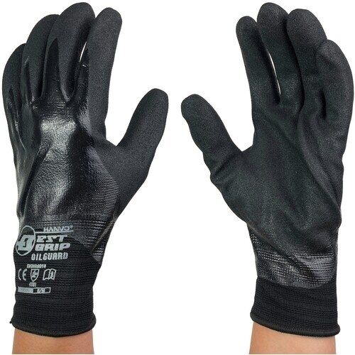 手の甲までコーティングしているので、油やゴミの侵入をしっかり防ぎます。手のひらには独自製法のファインフィニッシュ加工をしているので、油を伴う作業でも高いグリップ性能を発揮します。 |