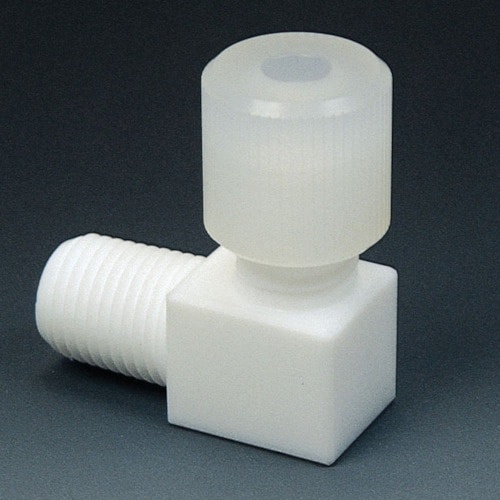 L字型ジョイントです。(オネジ×チューブ接続ジョイントです。Wフェルール式のジョイントでは、耐圧が常温で0.8Mpaまでもちます。機能上液がスムーズに流れるように流量抵抗が少ない設計となっています。 |