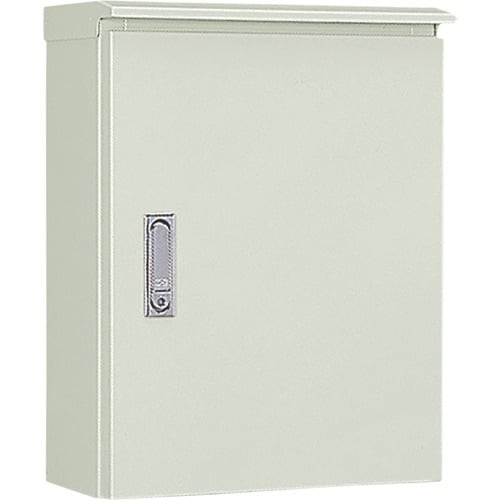水切構造、防塵・防水パッキン付の屋外用制御盤キャビネットです。施錠可能な防水平面ハンドルを採用しています。(キーNo.N200)屋外用の盤用キャビネットとしてもご利用ください。 |