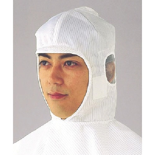 適度なフィルター性と通気性を併せ持ち表面強度にも優れた素材「プリータ[[R3]]」素材を使用した頭巾型フードです。前面顔部を開口し、顎部でマジックテープ掛け合わせにより着脱も容易です。