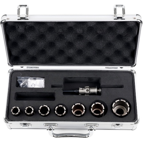 ポリクリック深穴ホールソーのアルミボックスキットです。超硬刃先でステンレスなどの被削材への穴あけが可能。