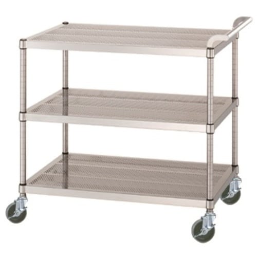 シンコー ステンレスワゴン(SUS430) 天地3段タイプ パンチング棚 φ100ウレタン車 900×450×800 PM039045U100 1台