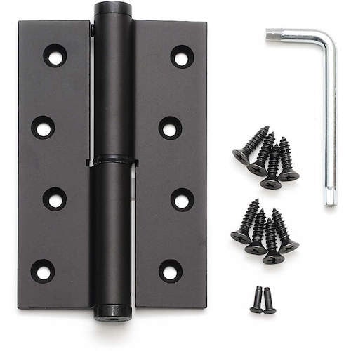 スプリングの力で、扉が自動的に閉まります。スプリングの強さを調節できます。扉の取り外しが容易におこなえます。 |