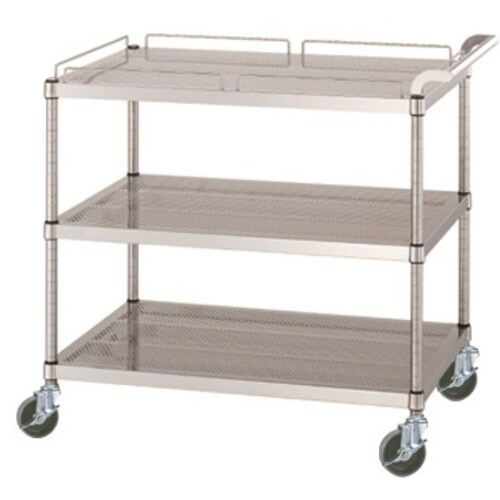 シンコー ステンレスワゴン(SUS430) 天地3段タイプ パンチング棚 ガード付1段ガード無2段 φ100ウレタン車 600×450×800 PM126045U100 1台