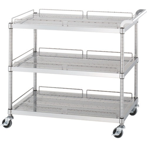 シンコー ステンレスワゴン(SUS430・ガード付)天地3段タイプ パンチング棚 φ75ウレタン車 750×450×800 PM307545U75 1台