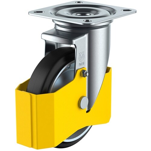 ユーエイ プレート式 自在 巻き込み防止カバー付キャスター ゴム 車輪径200mm PMタイプ PMS型IPC 取付寸法120×120(105×105) PMS200WBIPCY 1個