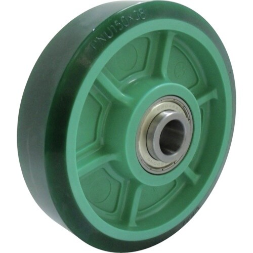ラジアルベアリングを使用しておりますので、回転がスムーズです。樹脂製ホイルを使用しているため、軽量で、錆びに強いです。運搬台車、機械の足回りに。食品工場、事業所での運搬。 |