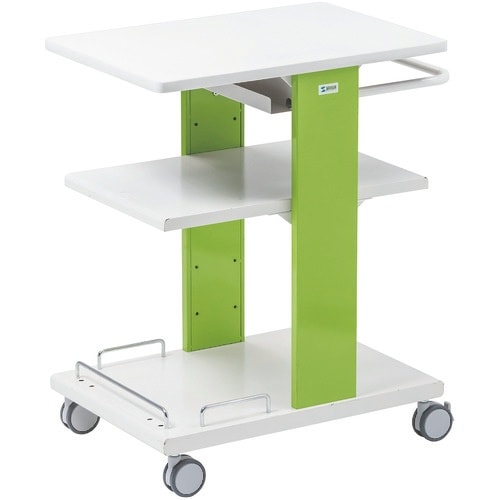 プロジェクターやAV機器の持ち運びに便利です。プロジェクターやノートPC、書画カメラなどを設置するプロジェクターカートです。教室間の移動などに配慮し、ハンドルと強度の高いキャスターを装備しました。 |