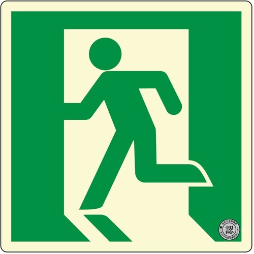 安全標識板JIS規格Z9107の高輝度基準をクリアした蓄光標識です。白色蛍光灯200ルクス20分間照射で約8時間視認可能です。両面テープ付きのため施工が簡単です。 |