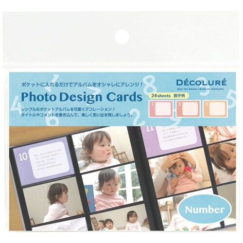 ポケットアルバムに差し込むだけで、L判のポケットアルバムを簡単にかわいくデコレーションできるデザインカードのセットです。テーマや好みに合わせてお選びいただけます。