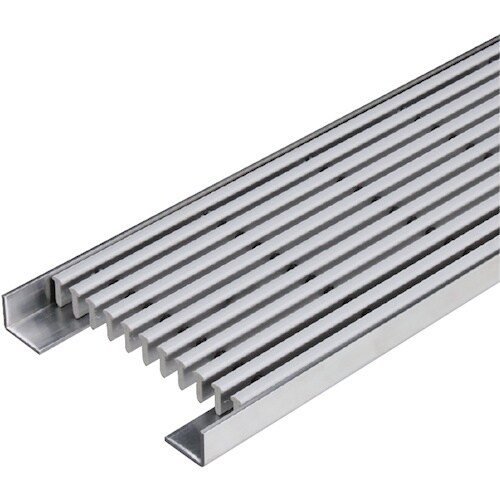 バリアフリー対応の納まりに適した、縦目タイプのグレーチングです。メインバーの主材料は、強度に優れた硬質ポリ塩化ビニルを採用、メインバー表面は、素肌に優しく、ノンスリップ効果のある軟質素材としました。 |